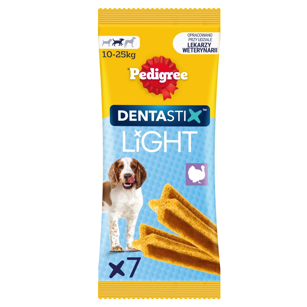 Naukowo udowodniono, że PEDIGREE DENTASTIX Light czyści i chroni zęby. To wykonane ze starannie dobranych składników przysmaki o lekkiej, nadającej się do gryzienia konsystencji, które psy uwielbiają. Ponadto zawierają o 30% mniej kalorii w porównaniu z DENTASTIX DAILY i są idealne na każdy dzień.