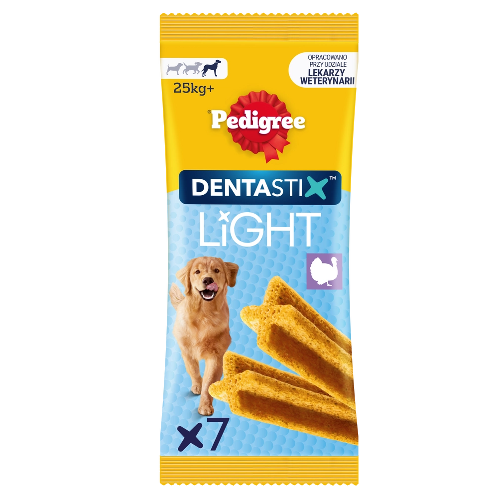 Naukowo udowodniono, że PEDIGREE DENTASTIX Light czyści i chroni zęby. To wykonane ze starannie dobranych składników przysmaki o lekkiej, nadającej się do gryzienia konsystencji, które psy uwielbiają. Ponadto zawierają o 30% mniej kalorii w porównaniu z DENTASTIX DAILY i są idealne na każdy dzień.