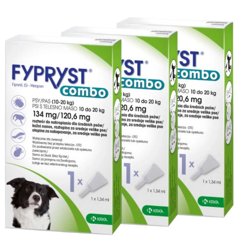 3x KRKA Fypryst Combo krople na pchły i kleszcze dla psa 10-20 kg 134mg/1,34ml 1 pipetaCena: 12,20 zł / szt.