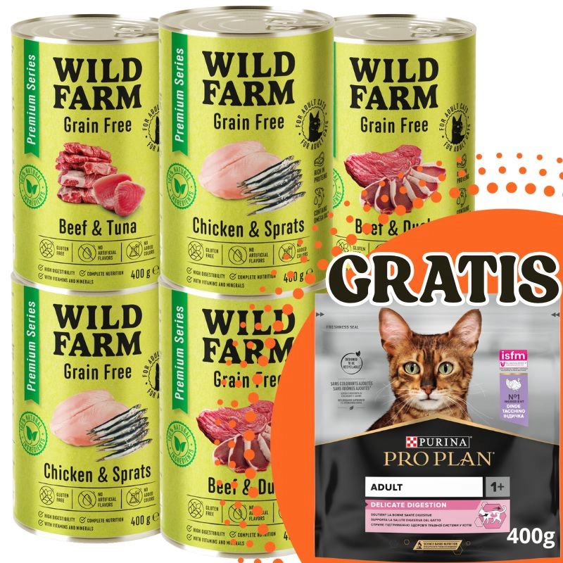 - 2x WILD FARM Premium Grain Free Chicken and Sprats 400g - bezzbożowa karma dla kotaCena: 5,90 zł / szt.