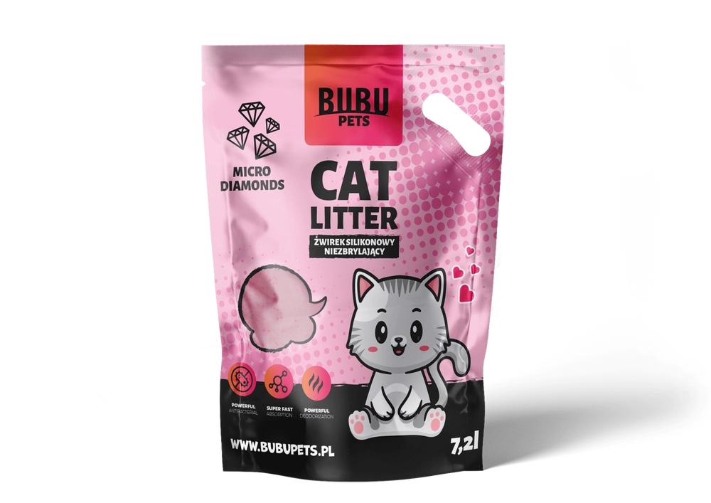 BUBU PETS to najbardziej przyjazny dla kotów i ich właścicieli niezbrylający żwirek silikonowy. Błyskawicznie wchłania on płyn i natychmiast pochłania nieprzyjemny zapach. Dodatkowo dzięki niemu utrzymanie czystości w domu, będzie niezwykle łatwe.
