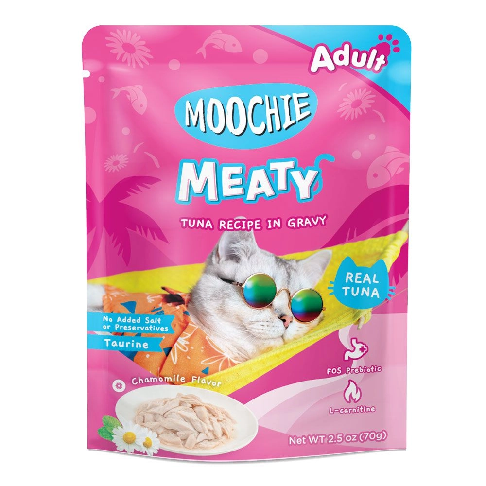 Moochie Meaty Tuna Recipe & Chamomile dla kotów – bezzbożowa karma z kwasami omega-3 i L-karnityną (70 g)