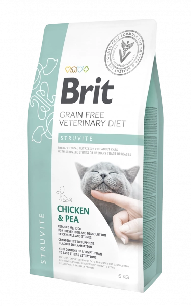 Podawać Karmę weterynaryjną Brit Kamienie Struwitowe dla kotów przez okres 5 do 12 tygodni w celu rozpuszczenia struwitów. Regularnie sprawdzać poziom pH moczu (właściwy 6.2–6.4) i pracę nerek u starzejących się kotów.