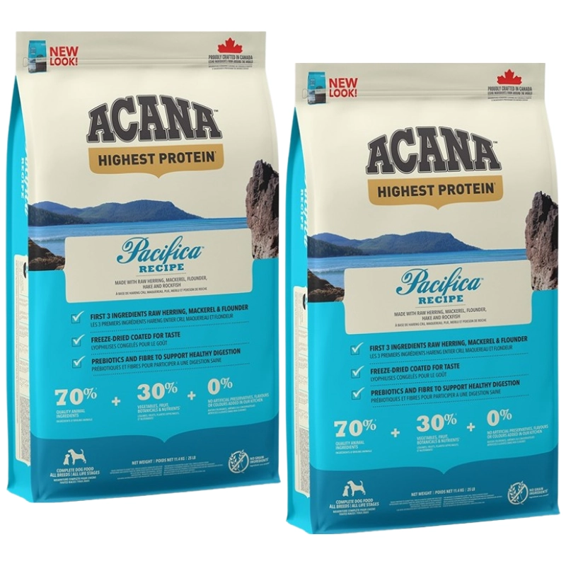 ACANA Pacifica to odzwierciedlenie bogactwa ryb, poławianych w zimnych, krystalicznych wodach Pacyfiku. Przepełniona jest świeżymi rybami, które poławiane są w sposób zrównoważony w naturalnym środowisku.