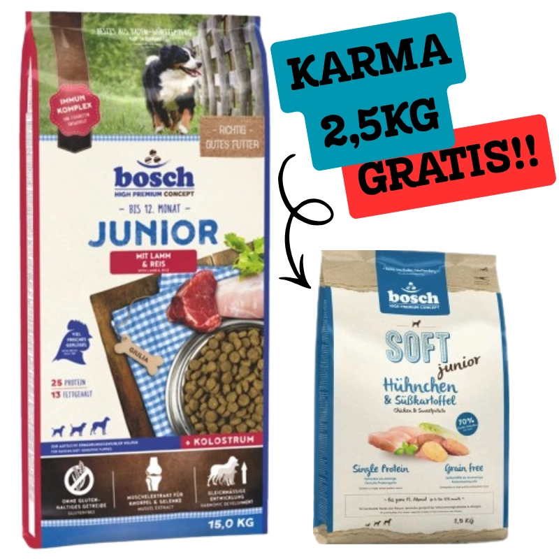 Bosch Junior Lamb & Rice, jagnięcina i ryż (nowa receptura) 15kgCena: 171,85 zł / szt. Bosch Junior Lamb & Rice, jagnięcina i ryż (nowa receptura) 15kgCena: 171,85 zł / szt.