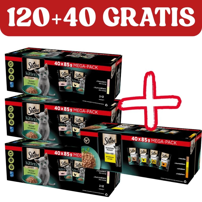 Sekretem mistrzowskiej receptury Sheba® Kitten Wybór Smaków są wysokiej jakości naturalne składniki oraz witaminy i minerały. Jedzenie stworzone specjalnie z myślą o rozwijających się kociętach, aby wspierać ich układ odpornościowy, mocne kości i rosnące mięśnie.