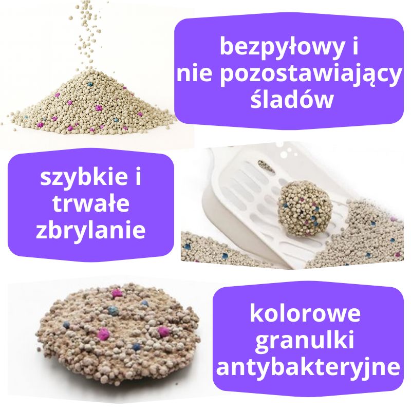 Zbrylone grudki nie przyklejają się do dna kuwety - zapobiegają rozprzestrzenianiu się bakterii.