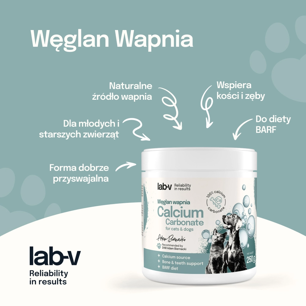 Produkty podobne do Lab-v Węglan Wapnia – Naturalne źródło wapnia dla psów i kotów 250 g