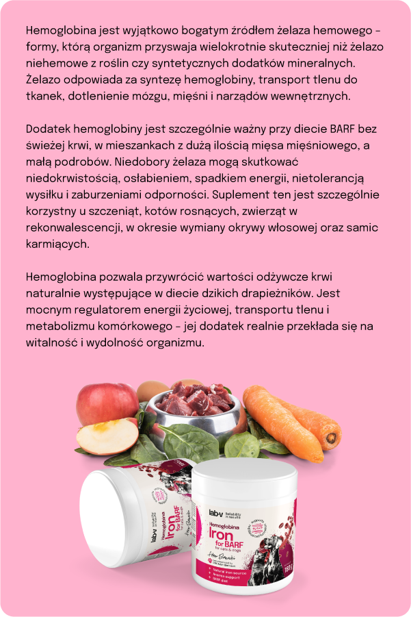 Dieta BARF (psy/koty): 8–10 g / 1 kg mieszanki mięsnej