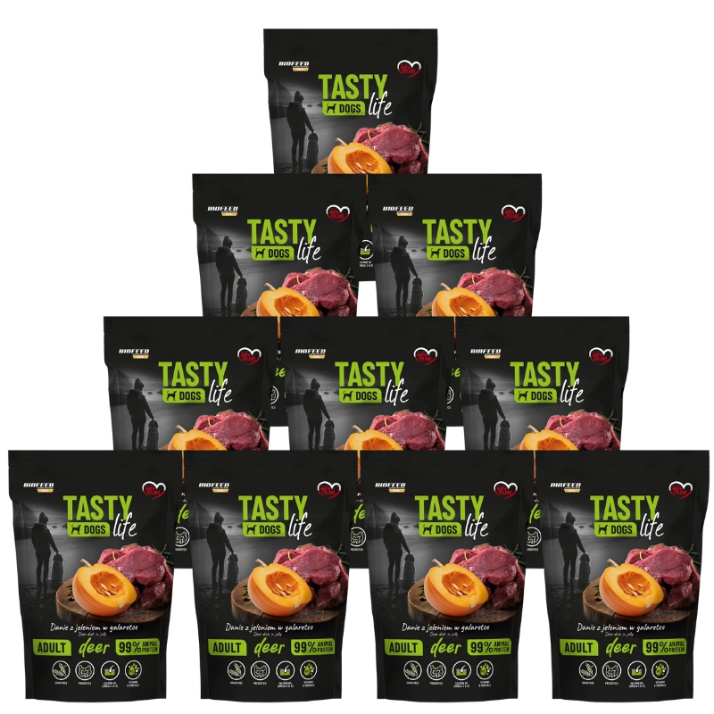 10x Tasty Dogs Life Danie z jeleniem w galaretce 150gCena: 4,99 zł / szt.