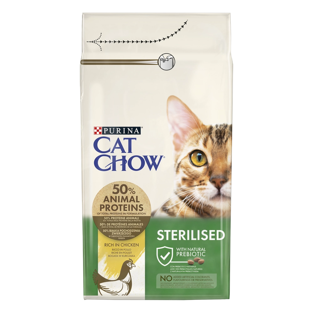 Pełnoporcjowa karma sucha Purina® Cat Chow® Sterilised - Bogata w Kurczaka to doskonały wybór dla Twojego dorosłego kota po zabiegu sterylizacji 🐱: