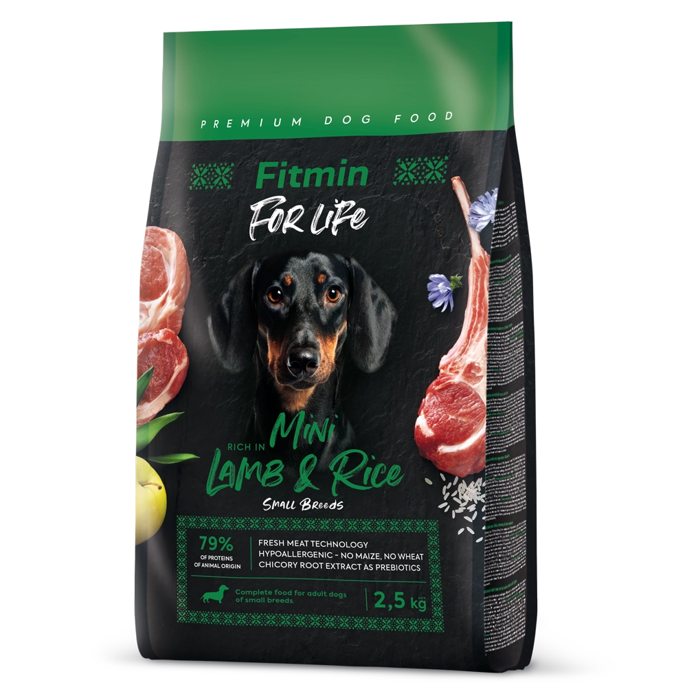 mięso (suszone mięso drobiowe 21%, świeża jagnięcina i podroby 15%, suszona jagnięcina 5%, hydrolizowana wątroba jagnięca 3%), ryż biały 24%, ryż łamany 24%, tłuszcz drobiowy, wysłodki buraczane suszone (z buraków cukrowych), wytłoki jabłkowe 3,5%, olej z łososia, związki nieorganiczne, drożdże piwne, korzeń cykorii 0,01%, juka 0,005%.