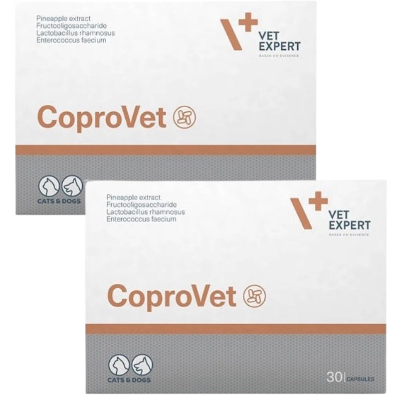 CoproVet to preparat zapobiegający najczęstszym przyczynom zjadania odchodów przez psa czy kota, czyli zjawisku koprofagii. CoproVet wspomaga prawidłowe procesy trawienia, uzupełnia i stymuluje naturalną mikroflorę przewodu pokarmowego oraz wspomaga redukcję nieprzyjemnego zapachu kału.