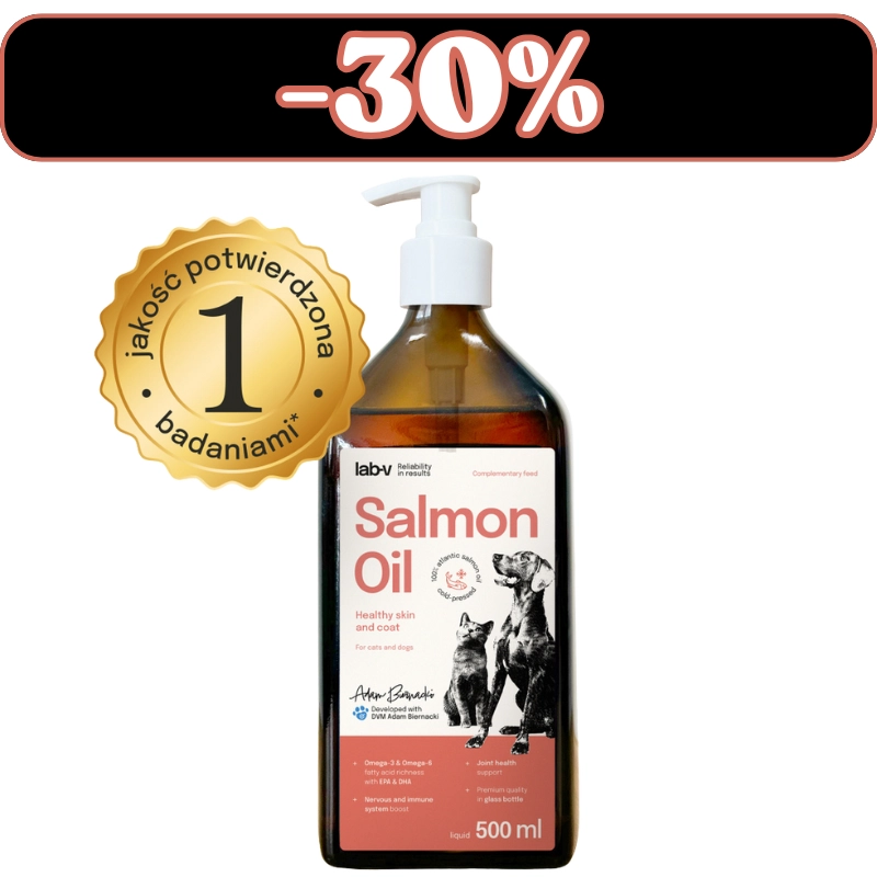Olej z łososia wspomaga kondycję skóry i sierści, łagodzi alergie, poprawia ruchomość stawów oraz wspiera układ immunologiczny i nerwowy.Czystość i jakość