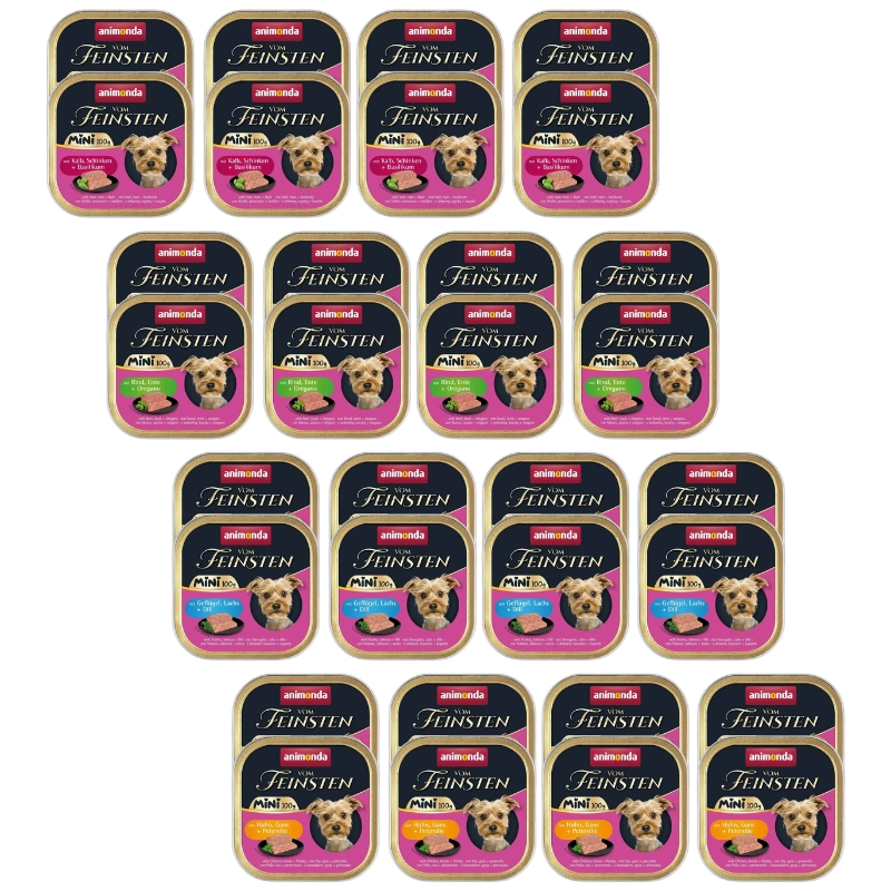 8x ANIMONDA Vom Feinsten mini adult cielęcina/szynka/bazylia 100gCena: 2,95 zł / szt.