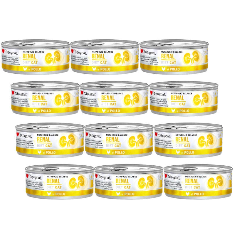 Disugual RENAL to pełnoporcjowa karma dietetyczna dla kotów dorosłych wspomagająca funkcje nerek w przypadku przewlekłej niewydolności nerek. Dodatek prebiotyków (XOS i MOS) wspiera układ trawienny. Dieta zawiera niską zawartość fosforu i wysokiej jakości białko surowe, które wspomagają pracę nerek. Ponadto jest wzbogacona olejem z łososia, naturalnym źródłem cennych kwasów tłuszczowych omega-3 wspierających funkcje nerek, zmniejszając białkomocz oraz wspierając układ krążenia.