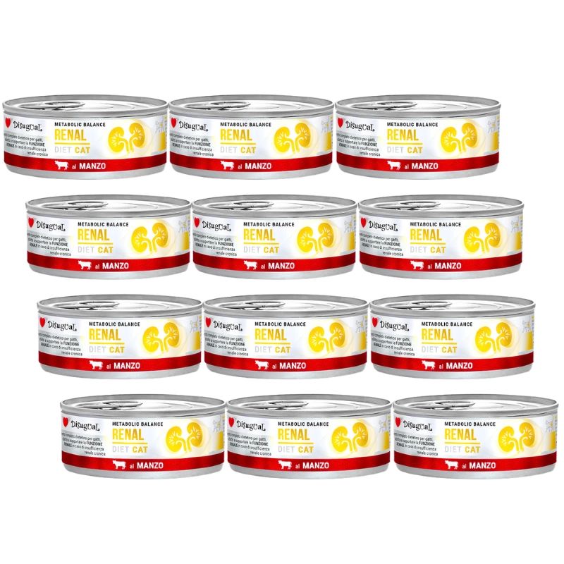 Disugual RENAL to pełnoporcjowa karma dietetyczna dla kotów dorosłych wspomagająca funkcje nerek w przewlekłej niewydolności nerek. Dodatek prebiotyków (XOS i MOS) wspiera układ trawienny. Dieta zawiera niską zawartość fosforu i wysokiej jakości białko surowe, które wspomagają pracę nerek. Ponadto jest wzbogacona olejem z łososia, naturalnym źródłem cennych kwasów tłuszczowych omega-3 wspierających funkcje nerek, zmniejszając białkomocz oraz wspierając układ krążenia.
